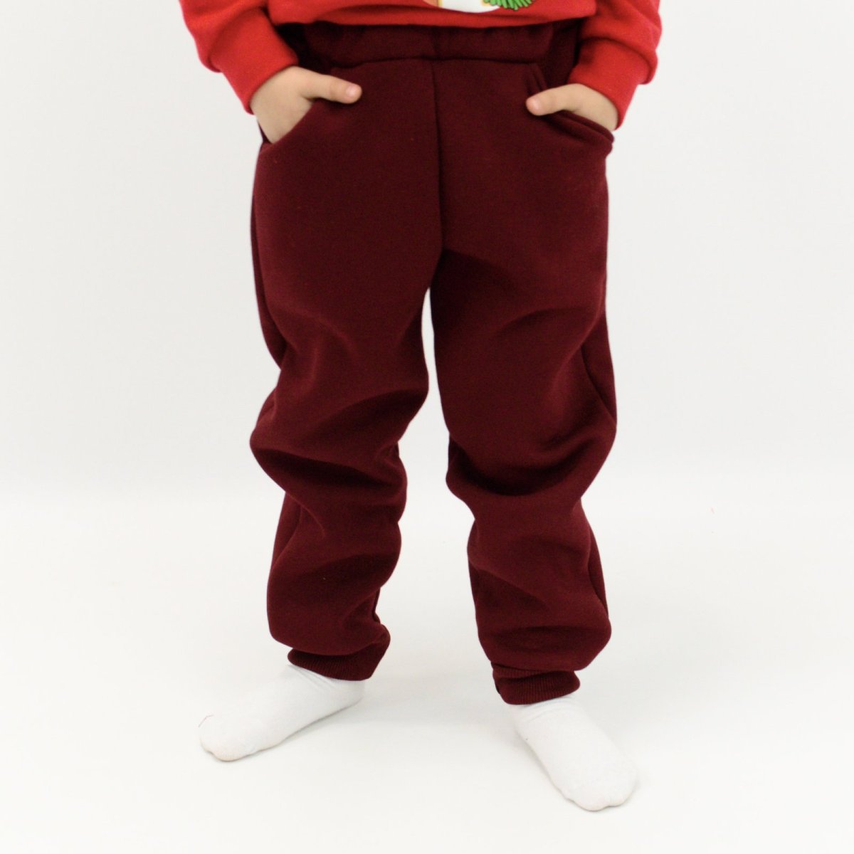 У сучасному світі кожній дитині необхідно мати у своєму гардеробі теплі спортивні штани. Інтернет-магазин "Арлекин" представляє Вашій увазі нову модель дитячих спортивних штанів, кольору бордо. Виріб виготовлено з трикотажного полотна - трьохнитки з начосом. Теплий і повністю натуральний матеріал гарантує Вашому малюку максимальну зручність. На поясі штанців присутня м'яка гумка, а краї ніжок оброблені манжетами. Також на штанцях є невеликі кишеньки. Ця модель спортивних штанців універсальна, підійде як дівчинці, так і хлопчикові.