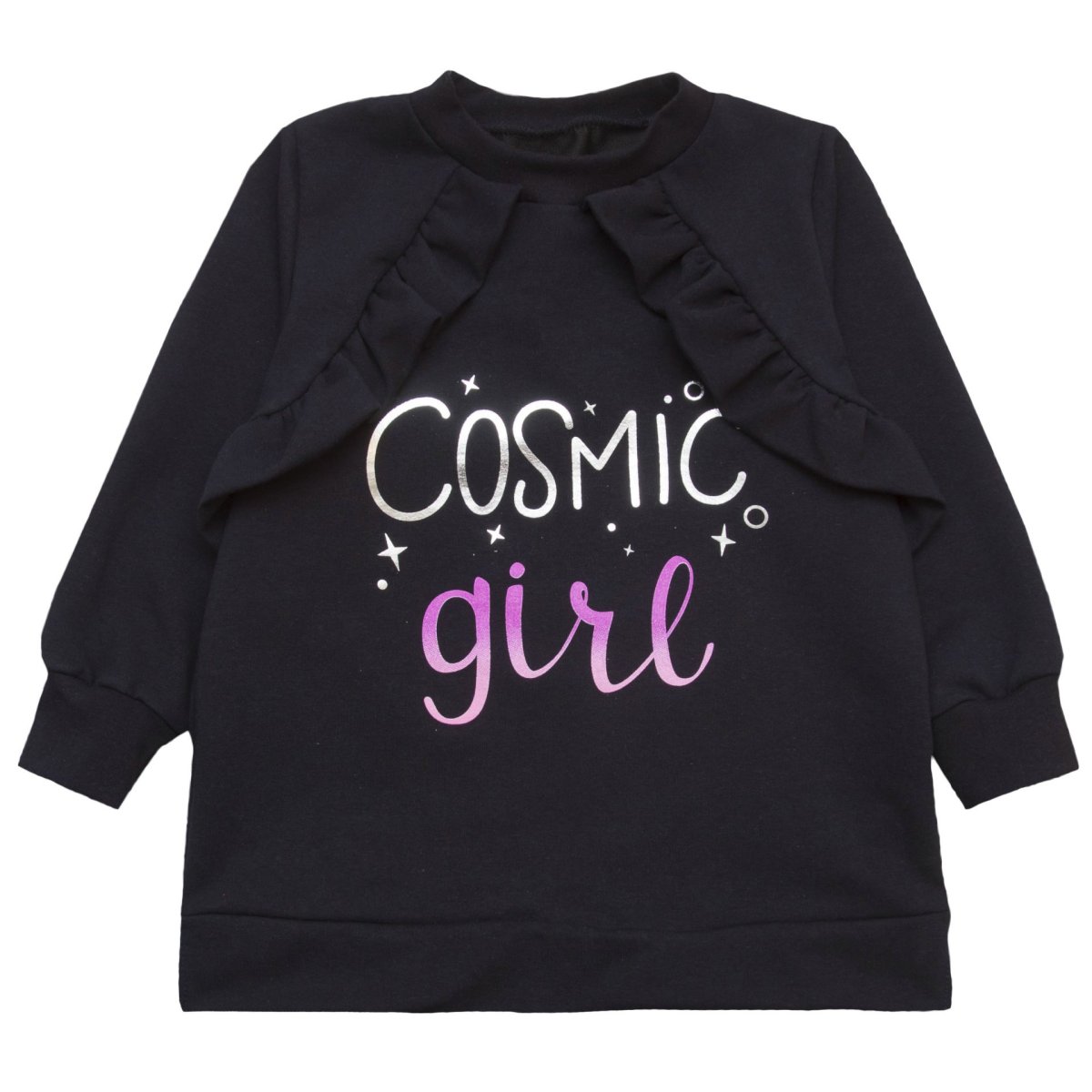 У нашому інтернет-магазині стильна новинка. Чорний джемпер для дівчинки виготовлений з якісного полотна - двунитка. Полотно щільне і добре підходить для міжсезоння за рахунок своїх якостей. Вироби з такого полотна добре носяться, не беруться кругляками. Спереду джемпера малюнок яскравий і стильний. Також спереду виробу рюші з основного полотна. У такому джемпері Ваша маленька буде чарівною, а також почуватиме себе дуже комфортно і тепло. Приємних покупок і гарного настрою разом з торговою маркою "Арлекін".