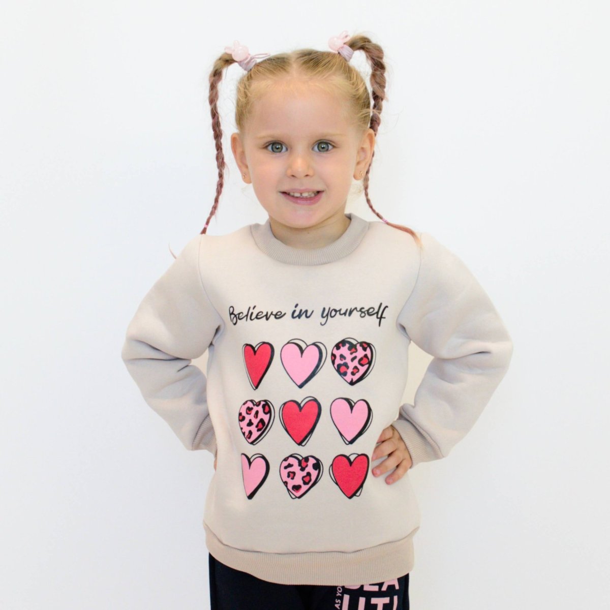 Джемпер для дівчинки Модель 4234-352 Бежевий Сердечки