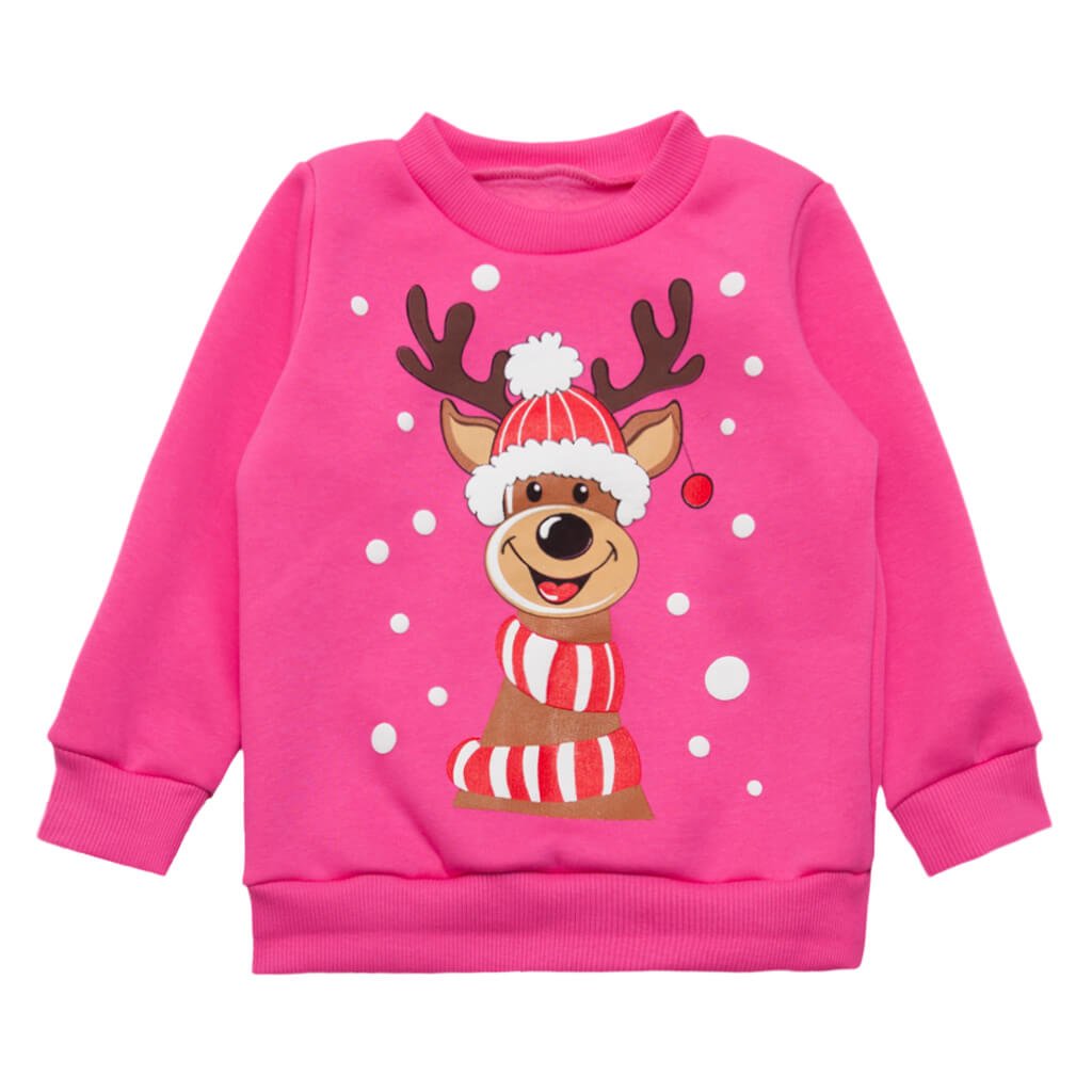Джемпер - дуже практична річ і користується попитом серед діточок. Нова модна модель вже з'явилася на нашому сайті. Даний джемпер, рожевого кольору з малюнком новорічного оленя, виготовлений з приємного і високоякісного полотна - трьохнитка. Полотно утеплене, таку кофтинку дитина зможе носити в прохолодну пору року. По низу, рукавів і горловини присутні манжети. Надає розмаїтості гарне фарбування спереду. Забарвлення даної моделі Ви зможете підібрати і хлопчикові, і дівчинці. Такий джемпер можна легко комбінувати з різними джинсами або брюками, які є в інших розділах нашого інтернет-магазину «Арлекін».