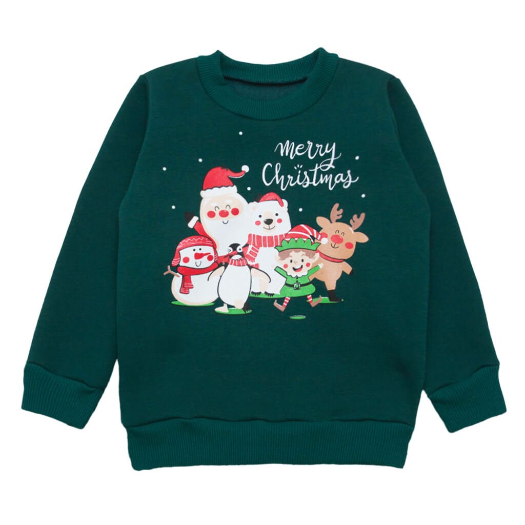 Джемпер - дуже практична річ і користується попитом серед діточок. Нова модна модель вже з'явилася на нашому сайті. Даний джемпер зеленого кольору з новорічним принтом Merry Christmas, виготовлений з приємного і високоякісного полотна - трьохнитка. Полотно утеплене, таку кофтинку дитина зможе носити в прохолодну пору року. По низу, рукавів і горловини присутні манжети. Надає розмаїтості гарне фарбування спереду. Забарвлення даної моделі Ви зможете підібрати і хлопчикові, і дівчинці. Такий джемпер можна легко комбінувати з різними джинсами або брюками, які є в інших розділах нашого інтернет-магазину «Арлекін».