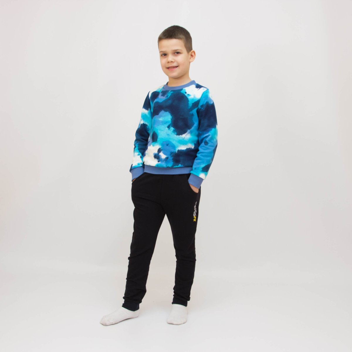 Стильний дитячий джемпер пошитий з якісного трикотажного полотна - бавовна петля. Матеріал повністю складається з натуральної та гіпоалергенної бавовни, тому ідеально підходить для повсякденного носіння. Синій світшот прикрашений красивим яскравим принтом, який присутній по всьому полотну. Цей джемпер відмінно поєднується з різними штанцями, джинсами або шортами, даючи змогу створювати стильні та різноманітні образи для будь-якої ситуації. Він підходить для повсякденного носіння, прогулянок, а також для активних ігор на свіжому повітрі.
