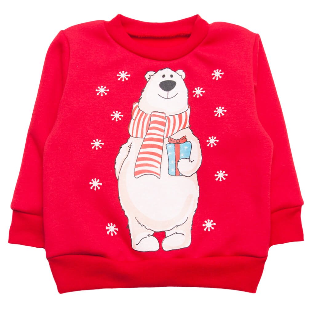 Якщо у гардеробі Вашої дитини вже є джемпера з начісуванням, і Ви хотіли б внести різноманітності, рекомендуємо Вам звернути увагу на цей варіант джемпера на хутрі червоного кольору. Це ідеальний варіант для зимового періоду. Тепле хутро з виворітного боку виробу забезпечить дитину теплом, комфортом та затишком. Величезною перевагою кофтинки є те, що на відміну від вовняних, в'язаних кофт, вона не буде колотись і не надасть дитині ніяких неприємних відчуттів. Навпаки - хутро дуже м'яке і приємне на дотик. Горловина та низ джемпера оброблені стрейчем, на рукавах – манжети. Крій виробу простий і дуже вдалий, а родзинкою є барвистий малюнок спереду. Такий принт точно сподобається малюкові!