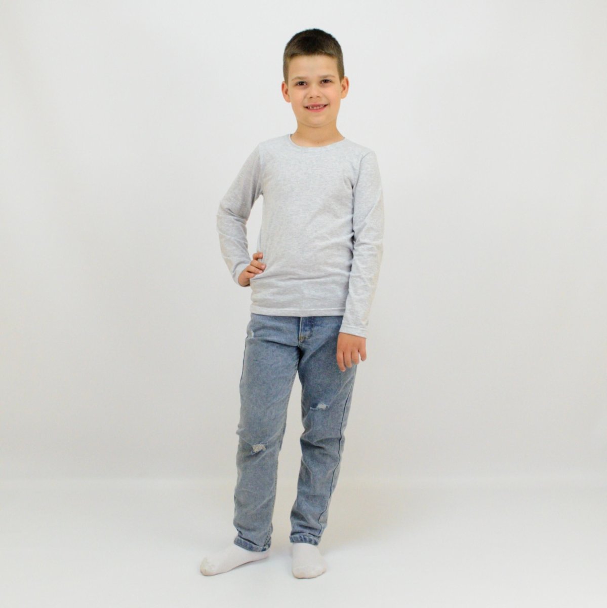 Дитячий реглан світло-сірого кольору виконаний з натурального кулірного полотна, яке вирізняється м'якістю, легкістю і високою повітропроникністю. Гіпоалергенна тканина дбайливо прилягає до шкіри, не викликаючи подразнення, що особливо важливо для малюків із чутливою шкірою. Гладка фактура матеріалу робить виріб комфортним у носінні протягом усього дня. Виріб представлений у кількох однотонних кольорах, завдяки чому легко поєднується з будь-якими елементами дитячого гардероба. Лаконічний дизайн і класичний крій дають змогу носити реглан як самостійну річ або в якості нижнього шару під жилетку, жакет або куртку.