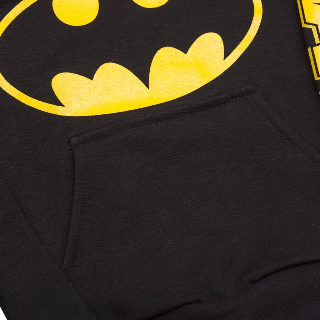 ТМ "Арлекін" пропонує Вашій увазі комплект для справжнього супергероя. Комплект складається з толстовки та штанів. Основною особливістю цього комплекту є фарбування у вигляді малюнків Batman. Фарбування є на штанах в районі колін і на толстовці по переду значок супергероя, на рукаві малюнок-напис Batman. На штанах та толстовці є кишені, на рукавах та по низу штанин еластичні манжети. Комплект виготовлений з натурального полотна двонитка, м'яке та приємне до тіла. Після прання полотно не втрачає форми та кольору.
