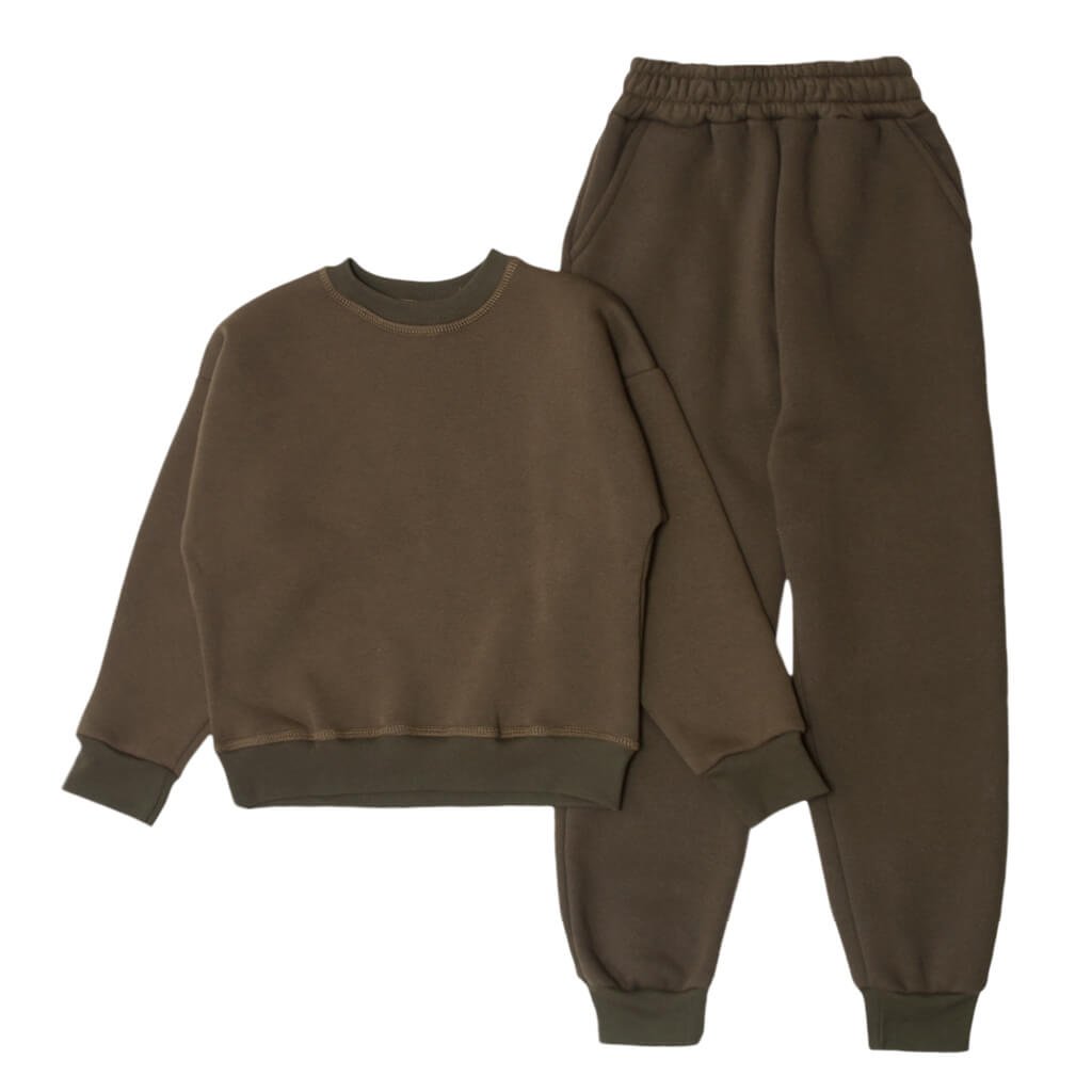 Практичний і стильний дитячий костюм кольору хакі з трьохнитки - це чудовий вибір для дітей, які цінують красу і комфорт. Виготовлений зі щільного та якісного матеріалу, він зберігає тепло в прохолодну погоду, водночас добре пропускає повітря, що запобігає перегріванню. Еластичні манжети на рукавах і штанинах щільно прилягають, не здавлюючи шкіру та забезпечуючи зручність у носінні. Завдяки м'якому внутрішньому шару костюм приємний на дотик і не викликає подразнень. Класичний крій та універсальний дизайн підійдуть як для повсякденного носіння, так і для спорту.