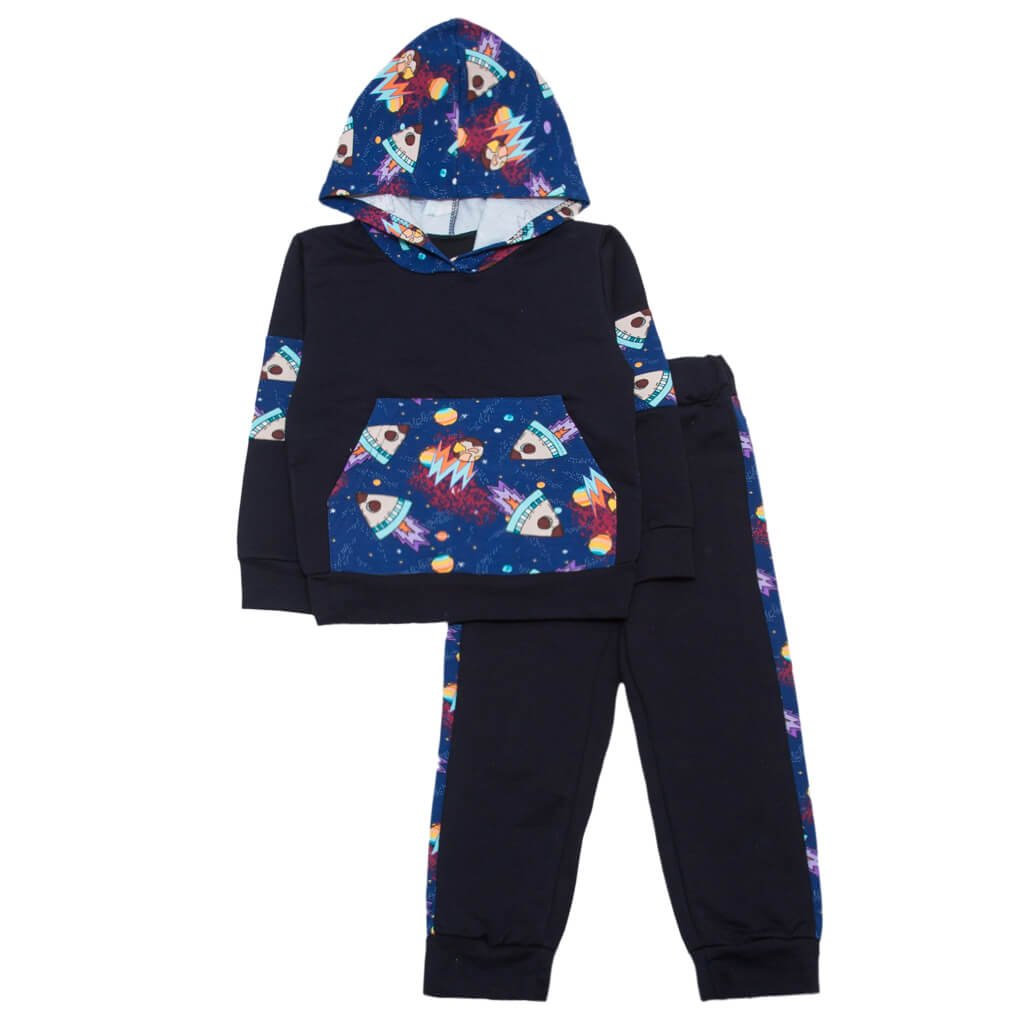 Дитячі костюми - це стильно, комфортно і дуже практично. Різноманітність моделей дитячих костюмів в нашому інтернет-магазині «Арлекин» точно порадує багатьох батьків! Представлений комплект кофти з капюшоном і штанців виготовлений з якісного і натурального полотна - двухнитка. На кофтині є кишенька. Також на кофті та штанцях є вставки з полотна з яскравим малюнком. Штани будуть добре триматися на дитину завдяки м'якій резиночці. Порадуйте свого малюка стильними та класними обновочками з нашого інтернет-магазину!