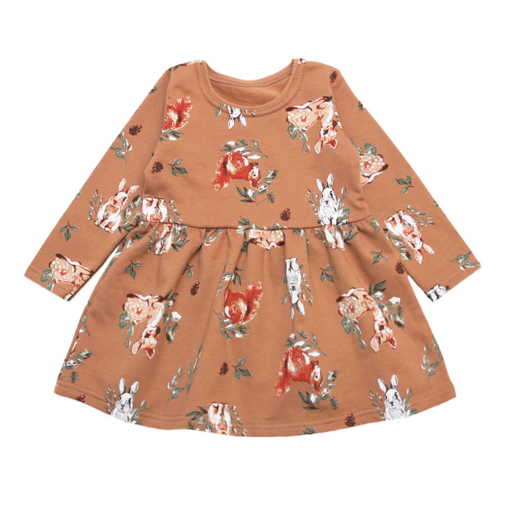 Складно уявити сучасну дівчинку без красивої сукні, яка ідеально підходить для холодної пори року. Ця сукня з начісом стане справжнім порятунком у прохолодні дні. Вона виконана з якісного і щільного матеріалу, який забезпечить надійний захист від холоду, зберігаючи тепло і затишок протягом усього дня. Сукня бежевого кольору з малюнками звіряток Бембі з довгими рукавами, що робить її ідеальною для осінньо-зимового періоду. Модель відрізняється вільним кроєм, який не сковує рухів. Ця сукня підійде для будь-якого приводу: від повсякденного носіння до святкових заходів, де малятко матиме стильний і привабливий вигляд.