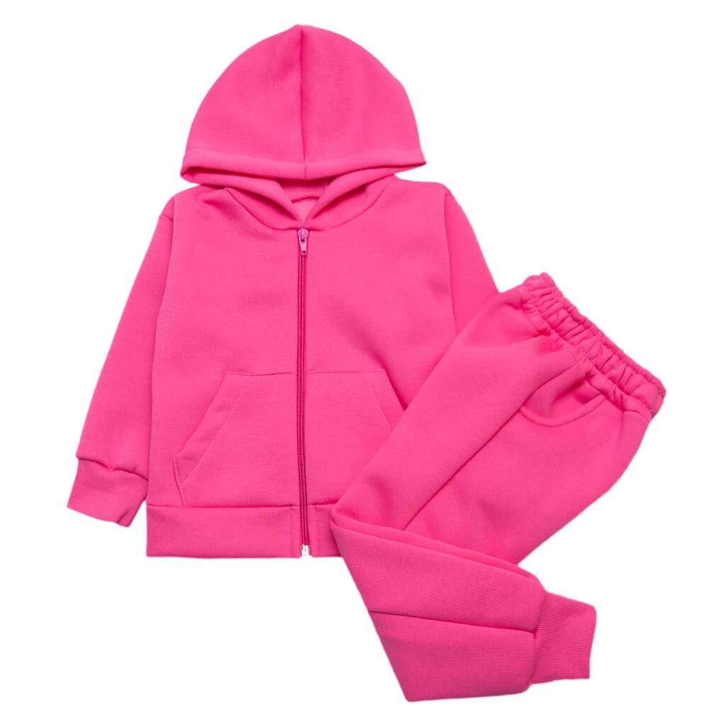 Спортивний костюм складається з кофти з капюшоном і штанців. Вироби виготовлені з м'якого якісного трикотажного полотна - трьохнитки. Ця тканина забезпечує хорошу повітропроникність та комфорт, що робить його ідеальним варіантом як для занять спортом, так і для повсякденного носіння. Кофта з капюшоном виконана на блискавці та доповнена невеликими кишеньками. На поясі штанців присутня м'яка еластична резинка. Даний спортивний костюм представлений в малиновому кольорі, ідеальний варіант для дівчинки.
