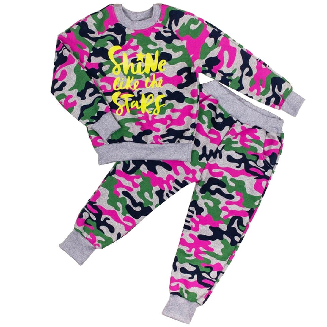 Спортивний костюм завжди був і залишиться актуальною річчю в гардеробі кожної дитини. Також такі костюми виглядають дуже стильно, тому багато дівчаток не відмовилися б від нового спортивного костюма з модним дизайном. Дана модель пошита з трикотажного бавовняного полотна - двонитки. Тканина має високу повітропроникність та зносостійкість. Кофта та штанці виконані з яскравим та неймовірно красивим дизайном, а джемпер доповнений фарбуванням на передній стороні. Краї виробів оброблені широкими манжетами.