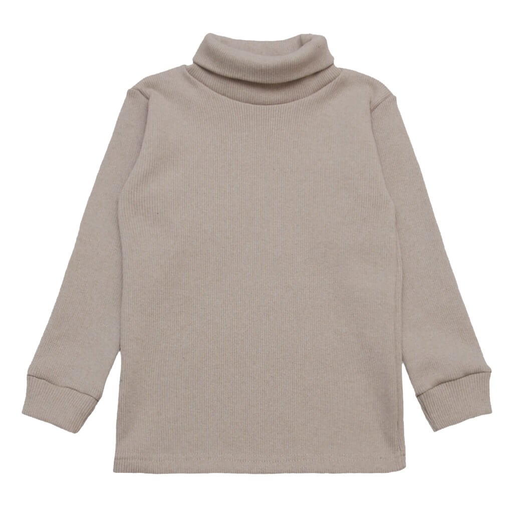 Однотонна водолазка пісочного кольору дитяча з довгим рукавом. Пошита з еластичного полотна, лицьові і виворітні петлі якого чергуються. Полотно для водолазки добре тягнеться і приймає свій колишній вигляд, тому моделька відмінно сяде по фігурці вашої дитини. Така водолазка розрахована на дитячий вік від 1,5 року, до дев'яти років. Подвійний воріт-стійка з основного полотна добре закриває шию дитини, перешкоджаючи задування холодного вітру. Рукава на манжеті з рубчика, низ водолазки підшитий роспошивом.