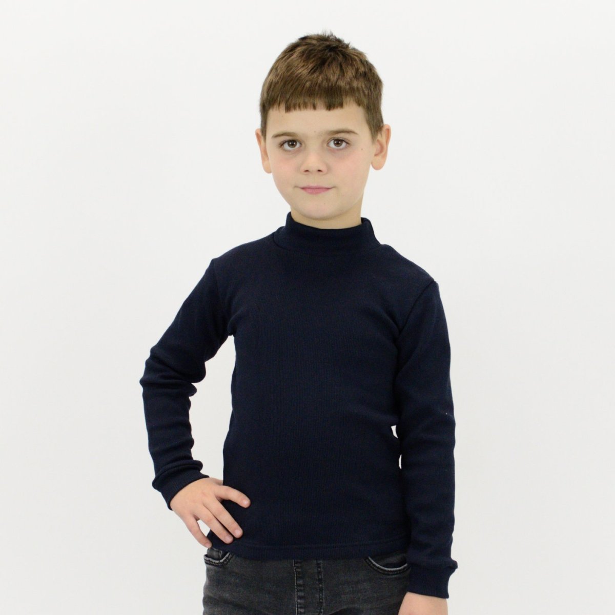 Темно-синя водолазка для хлопчика та дівчинки виготовлена з бавовняного полотна - рубчик, з додаванням лайкри. Це приємне на дотик полотно. Воно не викликає дискомфорту та добре сидить на тілі дитини. Водолазка – однотонна, тому ваша дитина з легкістю зможе одягнути під неї будь-які штани чи джинси. Поверх також можна підібрати светр або кофту на блискавці. Все це ви можете замовити у нашому інтернет-магазині. Ми маємо широкий асортимент дитячого трикотажного одягу. Приємних покупок та гарного дня!