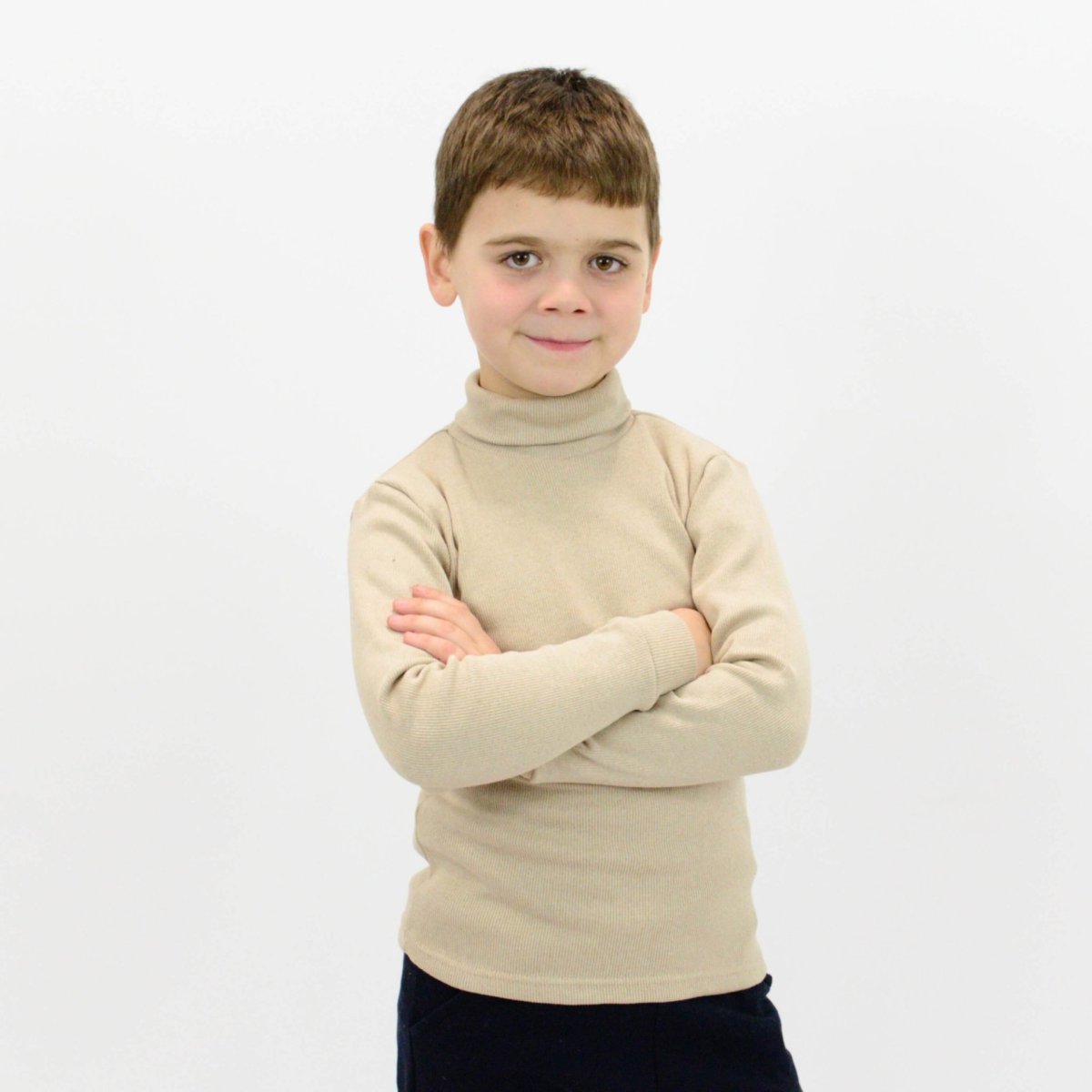 Водолазка дитяча, бежевого кольору, виготовлена з теплого полотна - рубчик з начісом. Це полотно еластичне і не деформується. Висока горловина дозволить регулювати шийку як зручніше буде дитині. До низу рукавів є манжети, які не дозволяють водолазці зміщуватися і підскакувати. Після прання виріб не линяє і залишається в колишній формі. Широкий розмірний ряд дозволить підібрати потрібний розмір для вашої дитини. Наш інтернет-магазин виготовляє якісний, натуральний, комфортний і стильний одяг для ваших діток!
