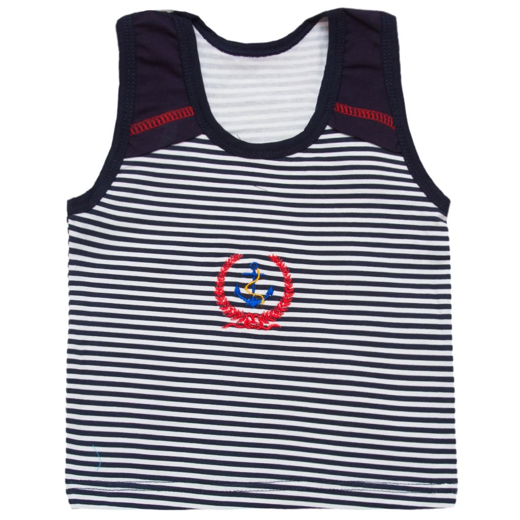 Майка-борцівка "Якір" зроблена з легкого, дихаючого полотна - стрейч-кулір. Виконана в морському стилі, в двох забарвленнях полотна: однотонного і набивного. В середині майки вишивка у вигляді якоря. Завдяки тому, що майка зроблена борцівкою - жарким літом в ній легко і прохолодно. Маєка дуже практична і її можна одягати під шорти, під бриджі або ж штанці. Полотно тягнеться, тому виріб не доставить дискомфорту дитині. Так само її можна з легкістю випрати і прасувати. Головне дотримуватися рекомендацій вказаних на етикетці.