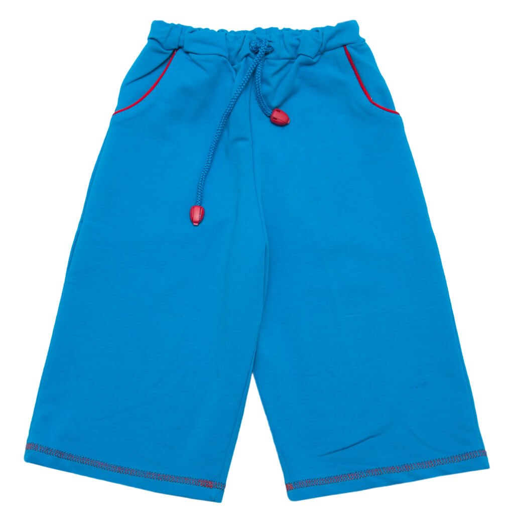 Шорти найвдаліший вибір для літа, але для хлопчиків асортимент літнього гардеробу представлений ще й бриджами. Вони трохи довші за шорт, тому відмінно підійдуть для менш теплих днів або для вечорів. Також бриджі чудова альтернатива для більш святкових заходів та урочистостей. Вони відмінно поєднуються з футболками, літніми джемперами та футболками-поло. Бриджі пошиті з двонитки. Це полотно має домішка лайкри в розмірі 6%, решта 94% - чиста бавовна, за рахунок цього полотно має більш міцне і зносостійке. Бриджі мають кишені, оброблені кантом, а також контрастне оздоблення по низу у вигляді розпошиву, в пояс вставлений шнур із фіксаторами.