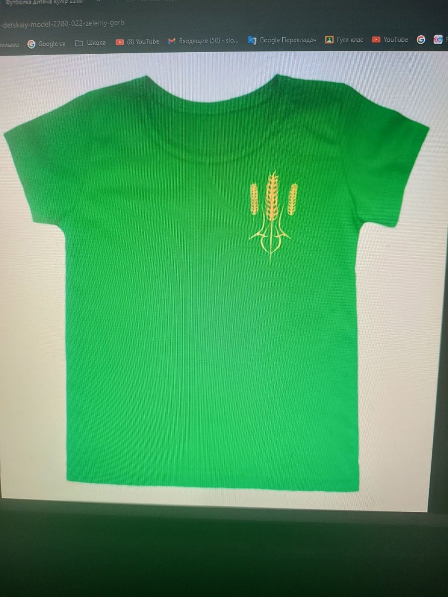 Футболка дитяча з натурального, якісного, бавовняного кулірного полотна зеленого кольору. Модель футболочки найпростіша, нічого зайвого, але в той же час зручна і практична. ПоЗа горловині отсторчка бейкою, рукава і низ распошив. Попереду футболки є не велика, стильна покраска герба. Красиві, однотонні, нейтральні кольори легко комбінуються з іншими речами з гардеробу маленького модника. Купуйте футболочку в нашому інтернет-магазині і порадуйте свого хлопчика красивою і стильною обновкою.