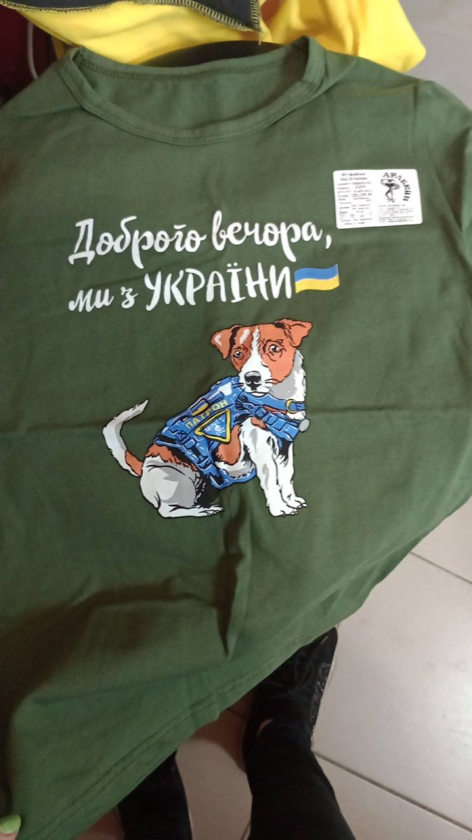 Купили дві футболки, пес патрон та з трезубом. Дуже добра якість. тканина приємна на дотик, шви рівні.Плюси: Плюс на весь розмір футболки.Мінуси: Немає -