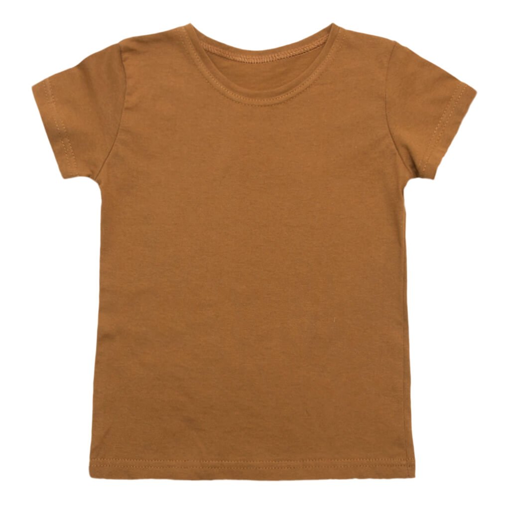 Футболка дитяча з натурального високоякісного кулірного полотна койотового кольору. Базова, проста моделька футболочки обов'язково потрібна в гардеробі кожної дитини. Полотно складається з бавовни і дозволяє шкірі дихати, і викликає зайвого потовиділення. Завдяки якісному крою, модель не буде сковувати рух дитини. На футболці по горловині окантовка бейкою, низ і рукава оброблені распошивом, з цього Вашій дитині буде комфортно в цій модельки. Також в нашому інтернет-магазині Ви зможете підібрати одяг на будь-який вік і сезон для своїх діточок. А ми звичайно в свою чергу будемо намагатись радувати Вас красивими, модними і стильними новинками.