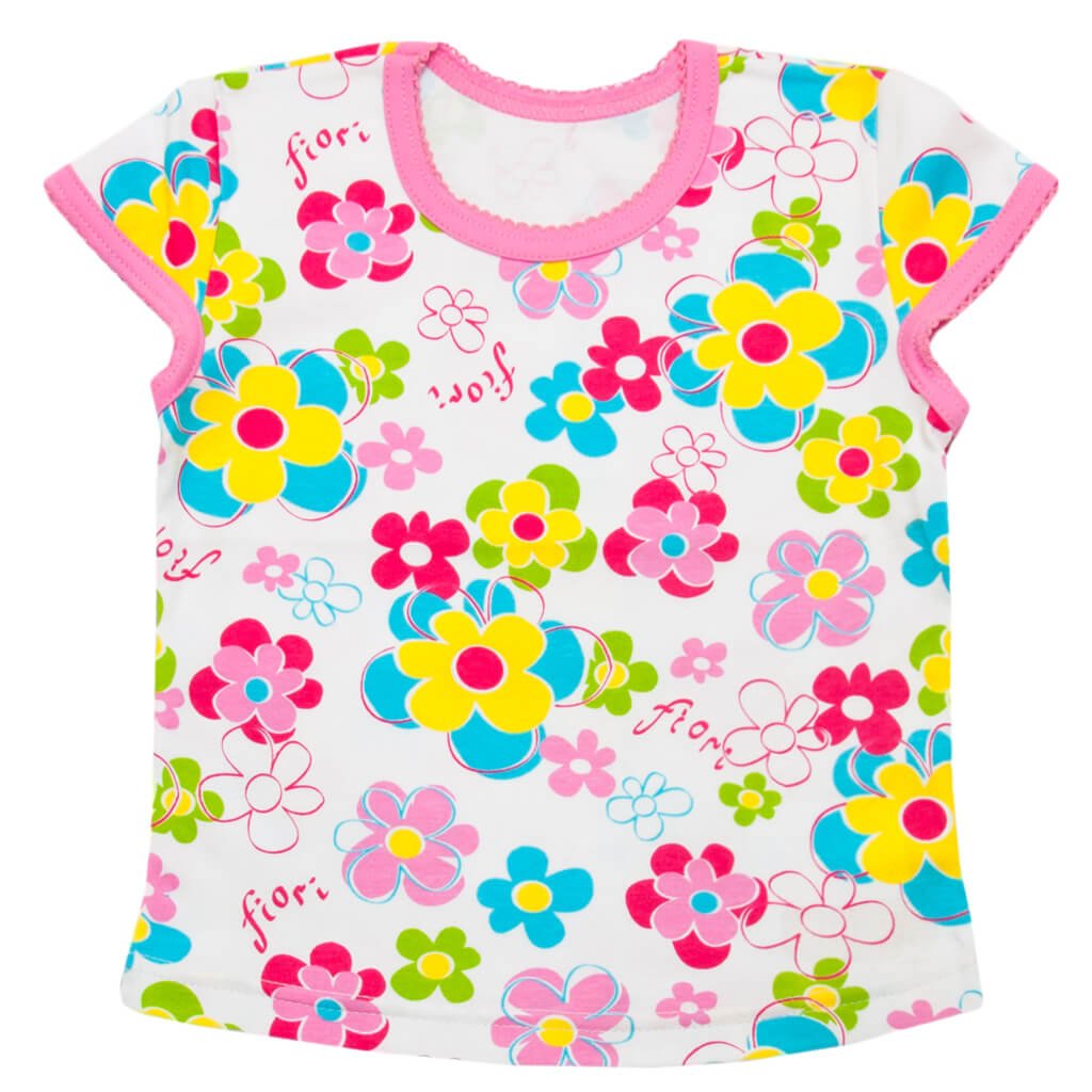 Яскрава футболочка для дівчинки пошита з натурального бавовняного полотна – інтерлоку. Це м'яка та дуже приємна на дотик тканина. Також інтерлок досить зносостійкий та повітропроникний, тому ідеально підходить для виготовлення дитячого літнього одягу. Краї горловини та рукавів футболки оброблені красивою крошетою. По всьому полотну Ви можете побачити яскраві малюнки, які точно піднімуть настрій Вашій дитині. Така футболка відмінно поєднуватиметься з різними шортами або штанами, які Ви також зможете придбати в нашому інтернет-магазині «Арлекин»!