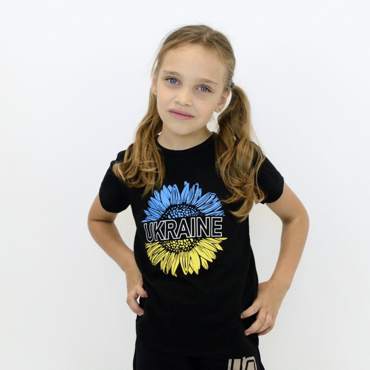 У нашому інтернет-магазині стильна новинка - чудова дитяча футболка. Модель виготовлена з натурального полотна - фулікри. Полотно м'яке й приємне до тіла, не викликає алергії. Футболочка представлена чорного кольору, принт UKRAINE. Модель не втрачає форму й колір, навіть після численних прань. Горловина на футболці оброблена бейкою, рукави та низ футболки оброблені розпошивом. Завдяки правильному крою, футболка НЕ буде сковувати рух юної модниці. Попереду футболки стильне і якісне зображення. Придбавайте таку футболочку, і Ваша дитина носитиме її із задоволенням. Приємних Вам придбань та гарного настрою!