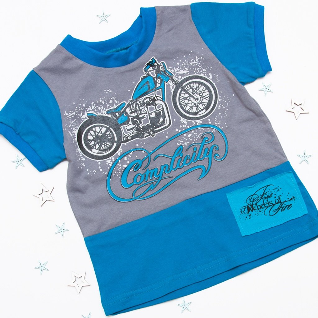 Футболка для хлопчика Модель 2222-022 Бірюза з сірим мотоцикл