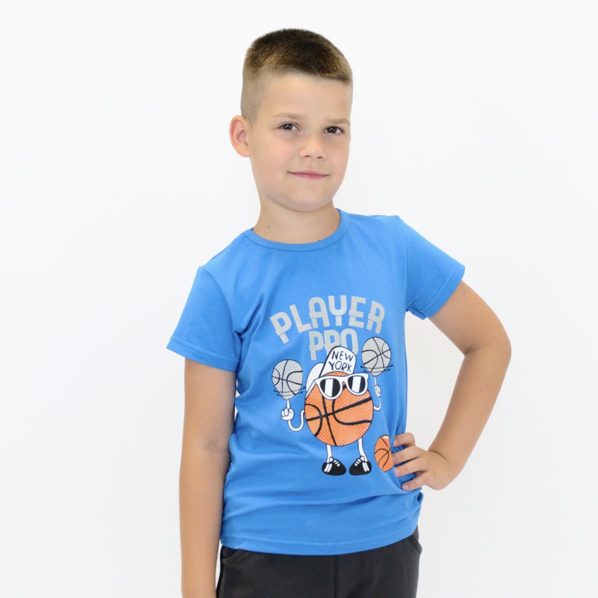 Футболка для хлопчика стрейч-кулір 2255-452 Синій М'ячі