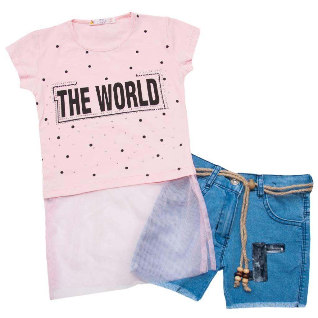 Кожній дівчині потрібно виглядати стильно і красиво, але при цьому не треба забувати про комфорт. Влітку діти дуже активні і рухливі та для цього потрібен зручний одяг. Нова модель комплекту для дівчинки складається з світло-рожевої футболочки і джинсових шортів. Футболочка пошита з якісного та м'якого полотна, завдяки якому футболка відмінно буде сидіти на дитині. Знизу футболку прикрашає фатин, такий дизайн виглядає дуже стильно і сучасно. Модель шортиків дуже проста і сама практична, в них Вашій красуні нічого не буде викликати дискомфорт. Як доповнення виступає миленький пояс.