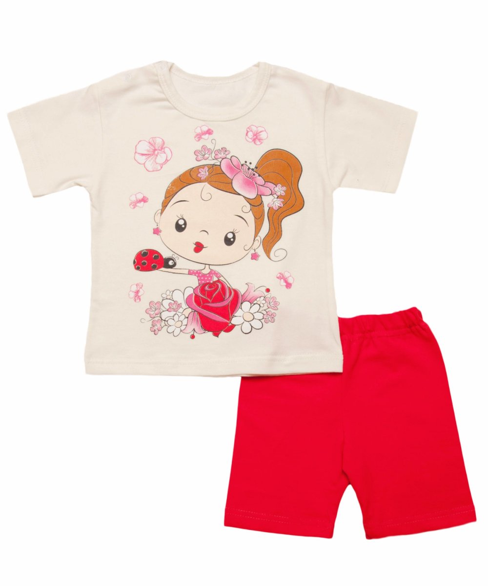 Літній красивий комплект для дівчинки складається з футболки та шортиків. Комплект виконаний з полотна стрейч-кулір. Тканина м'яка, приємна до тіла, гіпоалергенна. На одному плечику футболки - застібка на кнопках. Спереду милий принт, який точно сподобається Вашому малятку. Зображення на футболці відмінно поєднується з кольором шортиків. Пояс шортиків на еластичній резинці, тому він не перетискуватиме животик вашій донечці. Підберіть вподобане забарвлення та порадуйте свою дівчинку новинкою від ТМ "Арлекін"!