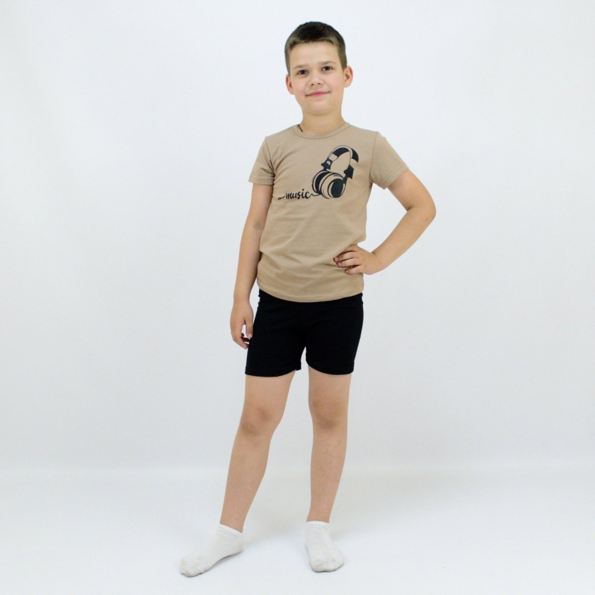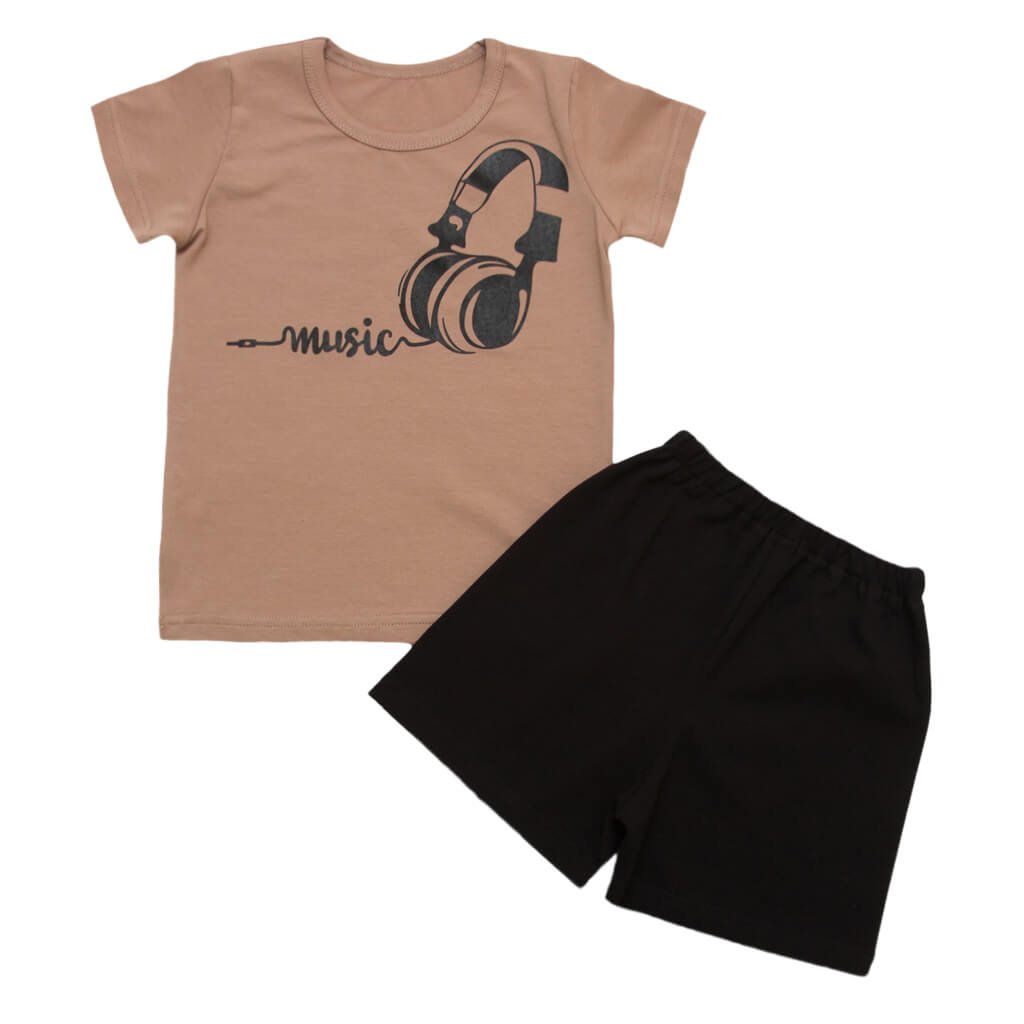 При оновленні гардеробу до літа, необхідно враховувати якість та зручність одягу вашої дитини. Наш інтернет-магазин пропонує комплект, виконаний з натурального м'якого полотна стрейч-кулір. Яскрава барвиста футболка кольору капучино, прекрасно поєднується з чорними однотонними шортами. Спереду її розташовано якісний модний малюнок навушників. Такий костюм не сковуватиме рухів ваших хлопченят в активних іграх, і в ньому не буде спекотно. Торгова марка Арлекін бажає Вам приємних придбань в нашому магазині.