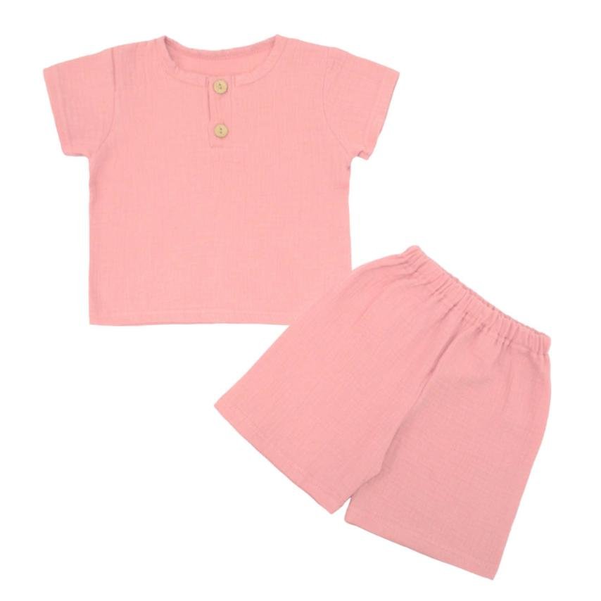 Літній одяг для дитини має бути не тільки красивим, а й зручним, легким і приємним до тіла. Комплект теракотового кольору для дівчинки з мусліну ідеально підійде для спекотної погоди, забезпечуючи комфорт і свободу рухів. До складу набору входить однотонна футболка з короткими рукавами, доповнена акуратними ґудзиками біля горловини, а також шортики на м'якій резинці, які не тиснуть на животик і добре фіксуються на тілі. Муслін - це натуральна бавовняна тканина з повітряною структурою, яка відмінно пропускає повітря і швидко вбирає вологу, створюючи відчуття легкості. Завдяки вільному крою комплект не сковує рухів, даючи змогу маляті активно рухатися, гратися і досліджувати світ.