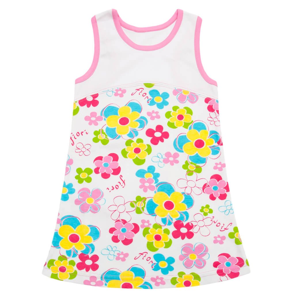 Літній сарафан - базова та завжди актуальна річ у гардеробі кожної дівчинки. Нова модель сарафана пошита з високоякісного трикотажного полотна - інтерлоку. Тканина неймовірно легка та приємна на дотик, завдяки цьому в такому сарафані Вашій дитині не буде спекотно. Краї горловини та рукавів виробу оброблені бейкою. Гарні та барвисті малюнки на полотні відмінно підійдуть для літнього сезону. У прохолодні вечори представлений сарафан можна з легкістю поєднувати з різними кофтинками або джинсовими куртками.