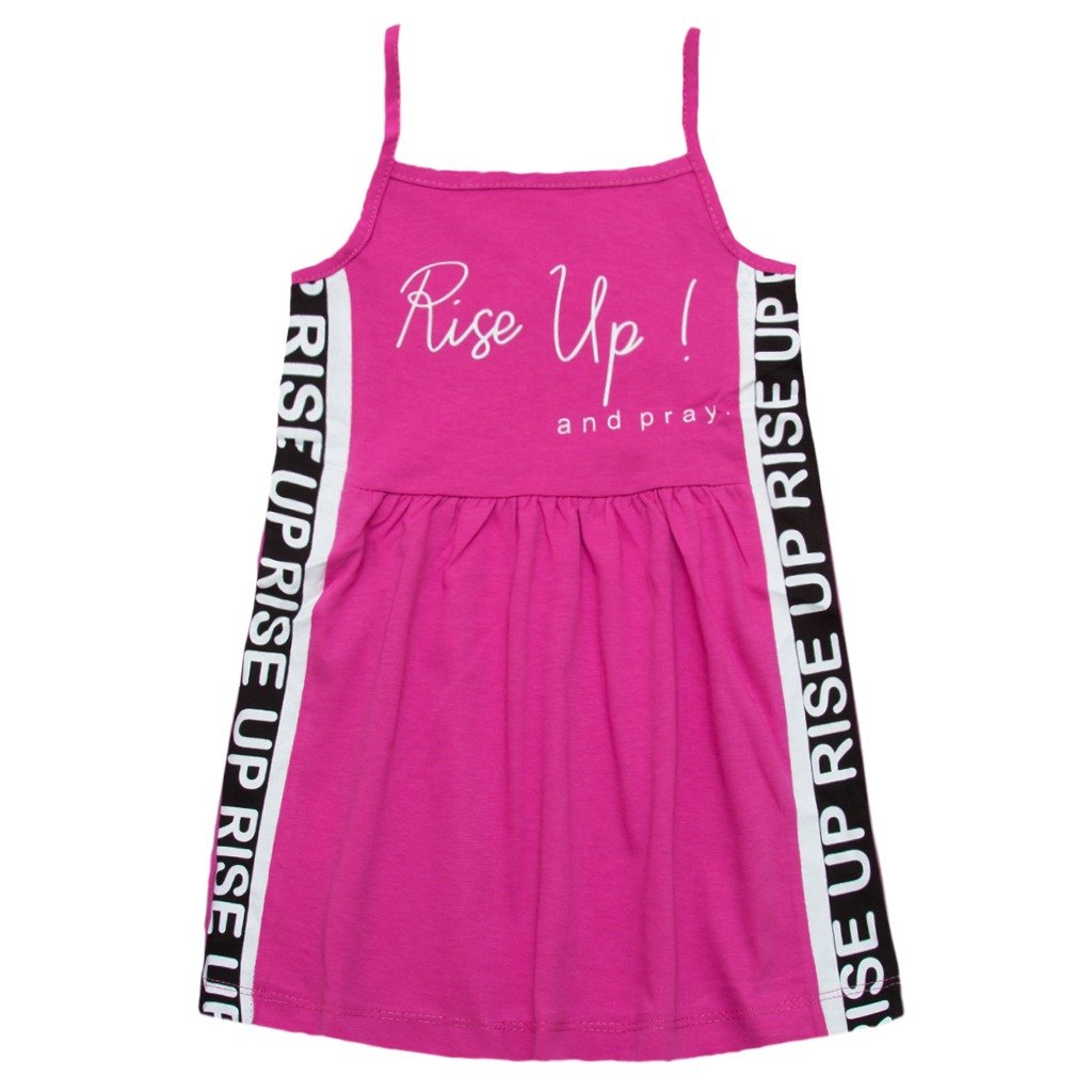 Жодна дівчинка не обійдеться без гарненького малинового платтячка в гардеробі. У нашому інтернет-магазині величезна кількість різних моделей суконь. Дана модель виготовлена з високоякісної фулікри, таке полотно дозволяє шкірі дихати, і при цьому буде добре сидіти на дитині. Плаття на лямках, що прекрасно підійде для літнього періоду. З боків присутні вставки з написами по всій довжині, виглядає досить стильно і привабливо. Такий варіант сукні відмінно сяде на Вашій маленькій принцесі і буде виглядати неймовірно красиво!