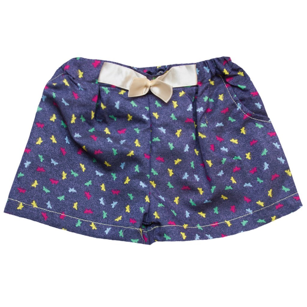 Короткі шортики для дівчинки - літній варіант, в якому буде комфортно навіть у саму жарку пору, адже полотно досить легке, приємне до тіла. Шортики дуже стильні, мають забарвлення під джинс з яскравими малюнками. Дитячі шорти на широкій резинці, яка відмінно тягнеться і тримає форму. Також по поясу шортики прикрашені атласною стрічкою з милим бантом. З боків у шортиків є кишені. Такі шорти можна сміливо поєднувати з будь-футболкою, майкою, топом і навіть тунікою, які Ви також можете придбати на нашому сайті.