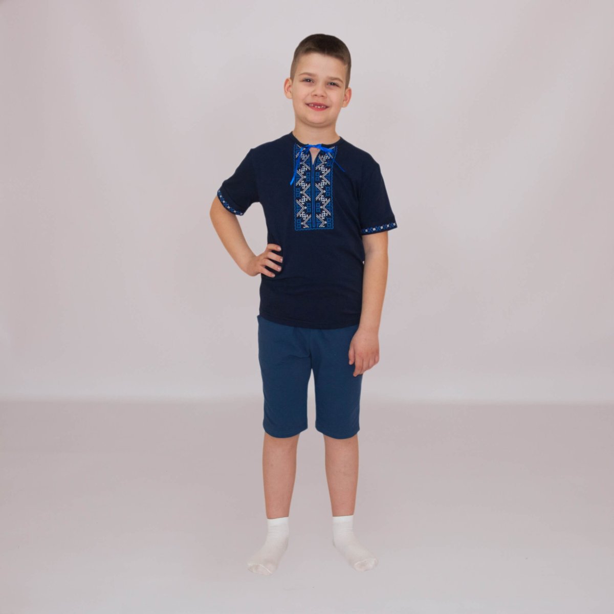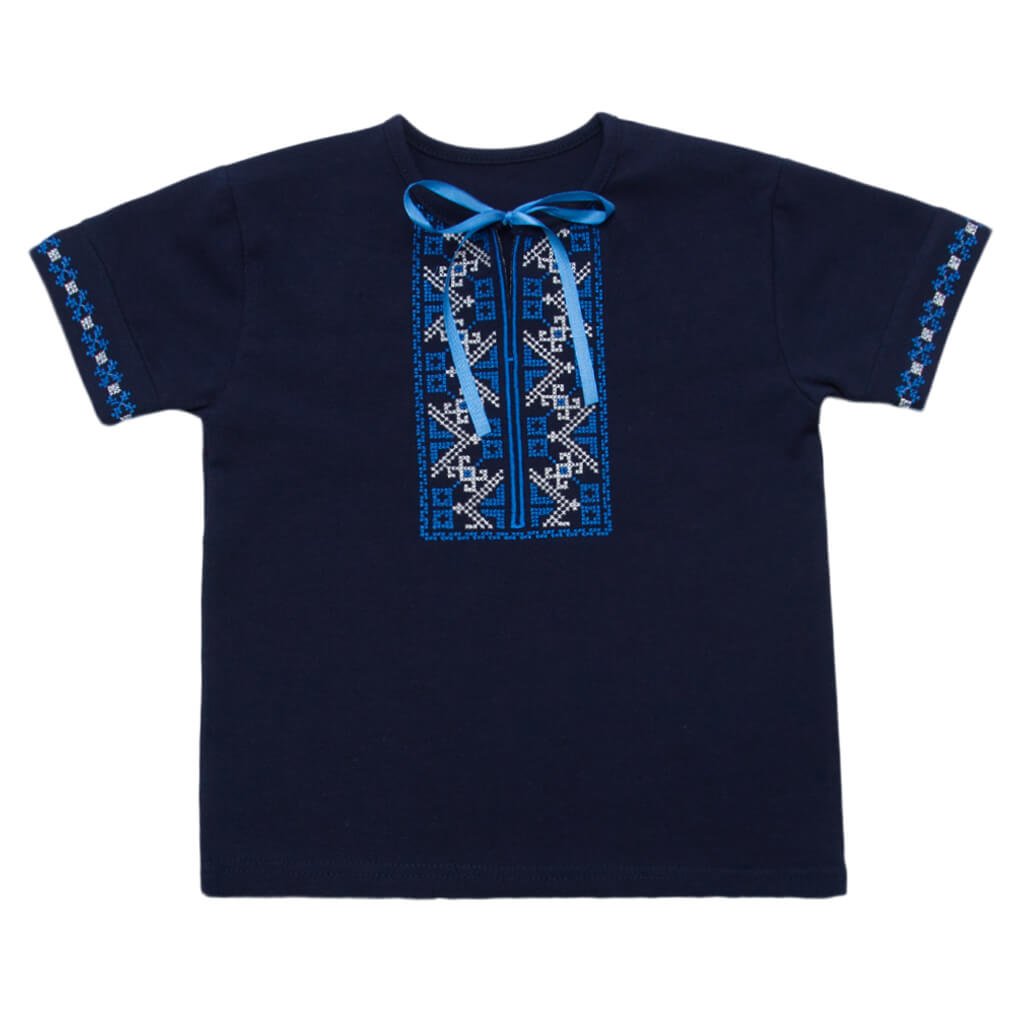 Інтернет-магазин "Арлекин" радує своїх клієнтів неймовірними новинками для діточок. Вашій увазі представлена нова модель вишиванки для хлопчика. Вишиванка - це стильний і зручний одяг, який поєднує традиційні елементи вишивки з сучасним матеріалом, що забезпечує хорошу еластичність і комфорт. Виріб пошито з високоякісного трикотажного матеріалу - стрейч-куліра. Цей матеріал досить добре тягнеться, і при цьому не розтягується. Вишиванка з коротким рукавом для хлопчика виконана в синьому кольорі.