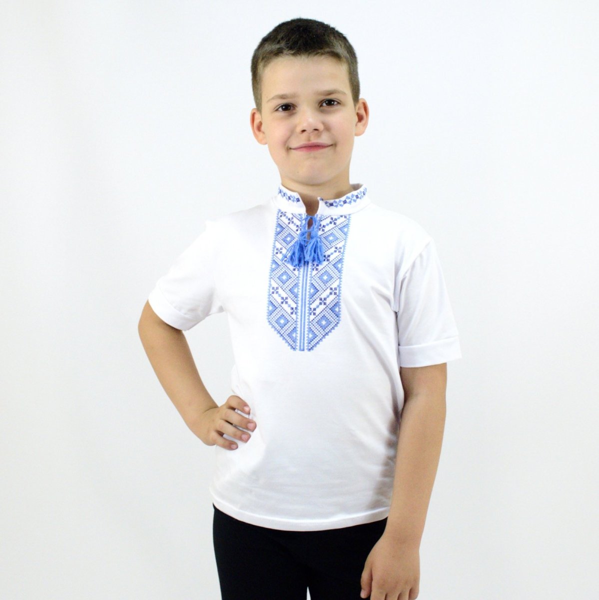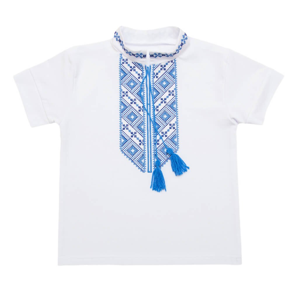 Біла вишиванка зі стрейч-куліру поєднує в собі зручність повсякденного одягу та символічність народних мотивів. Завдяки м'якому, еластичному матеріалу, модель комфортно сидить на тілі, добре тягнеться і не сковує рухів, що особливо важливо для рухливих малюків. На грудях і комірі розміщена акуратна машинна вишивка. Класичний крій і короткий рукав роблять цю модель придатною як для урочистостей, так і для повсякденного носіння в теплий період. Такий варіант вишиванки чудово підійде для заходів у садочку, національних свят, шкільних заходів або сімейних фотосесій.
