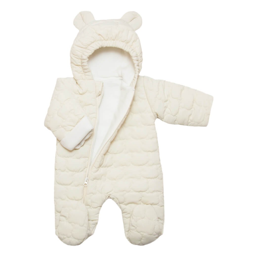 Легкість, тепло і турбота - саме так можна описати цей чарівний дитячий комбінезон, створений для найменших. Він забезпечить затишок і комфорт малюкові в демісезонний період, захищаючи від вітру та прохолоди. Виготовлений з якісної плащової тканини, він не пропускає вологу, залишаючись при цьому м'яким і приємним на дотик. Усередині комбінезон утеплений ніжною флісовою підкладкою, яка дарує додаткове тепло й приємні тактильні відчуття. Зручна блискавка по діагоналі полегшує процес переодягання. Чарівний капюшон з вушками надає комбінезону милого вигляду, а універсальний світлий відтінок робить його стильним і практичним.