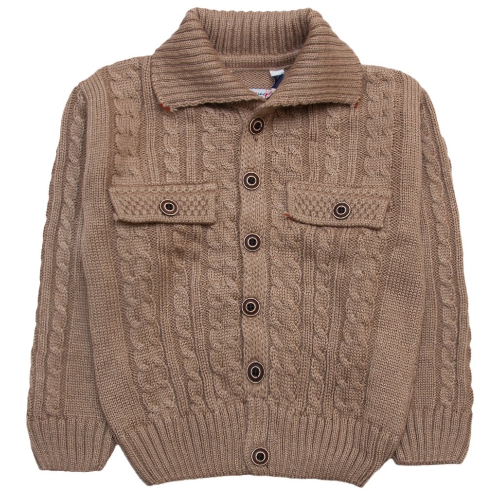 Неймовірно тепла в'язана світло-коричнева кофта для хлопчика. До складу нитки входить акрил і шерсть. Виріб застібається попереду на гудзиках, тому дитина з легкістю сама зможе регулювати як їй зручніше. Попереду красива в'язка з візерунками. Доповнюють виріб імітовані кишеньки. У цій кофті дуже класний комір. Коли одягаєш куртку, його можна підняти і він відмінно буде триматися під верхнім одягом і захищатиме шию від вітру і холоду. Підберіть в розділі "Теплий верхній" водолазку під цю кофту і можете не переживати за дитину, в такому одязі йому точно буде тепло!