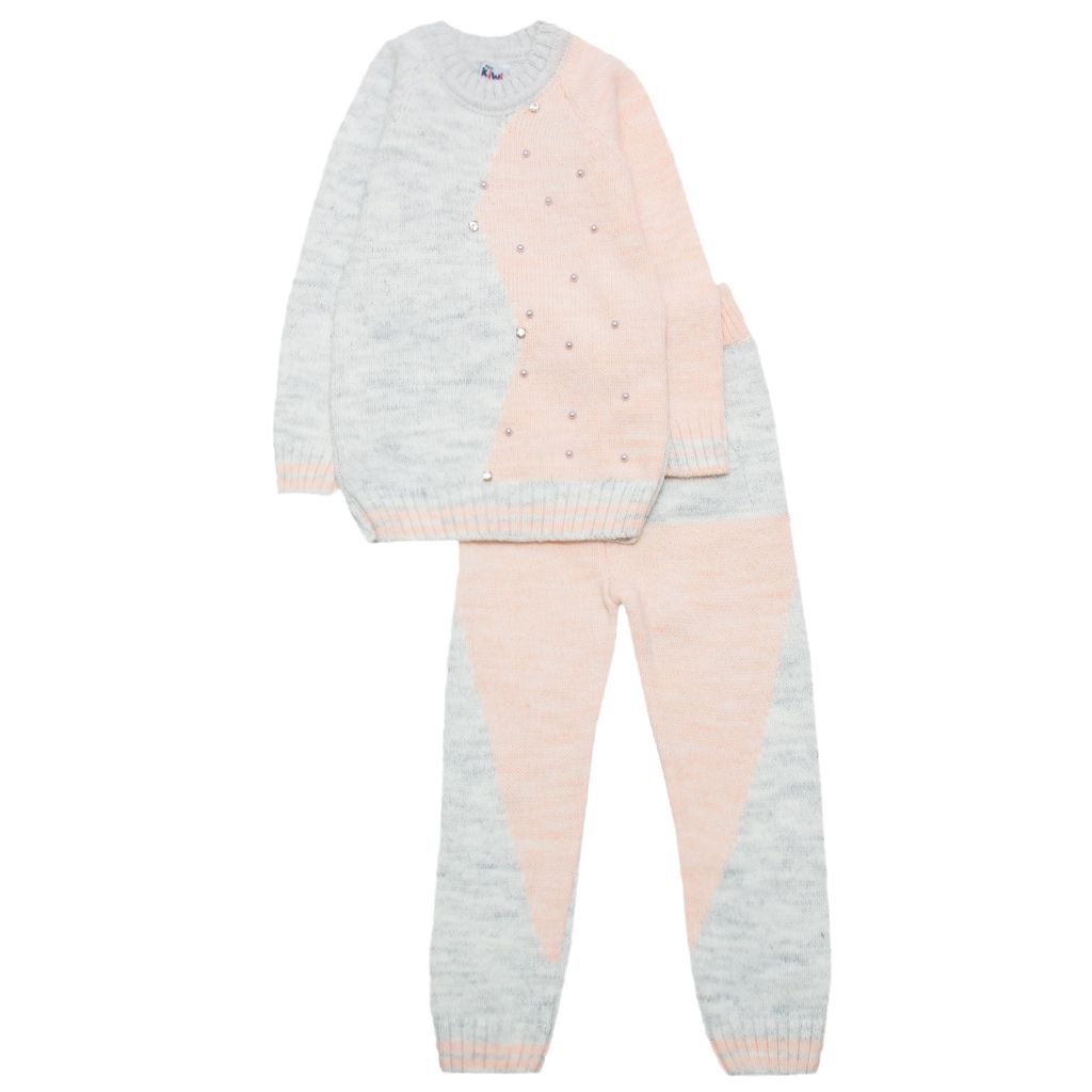 Костюм в'язаний для дівчинки Модель К102 Сірий/персик