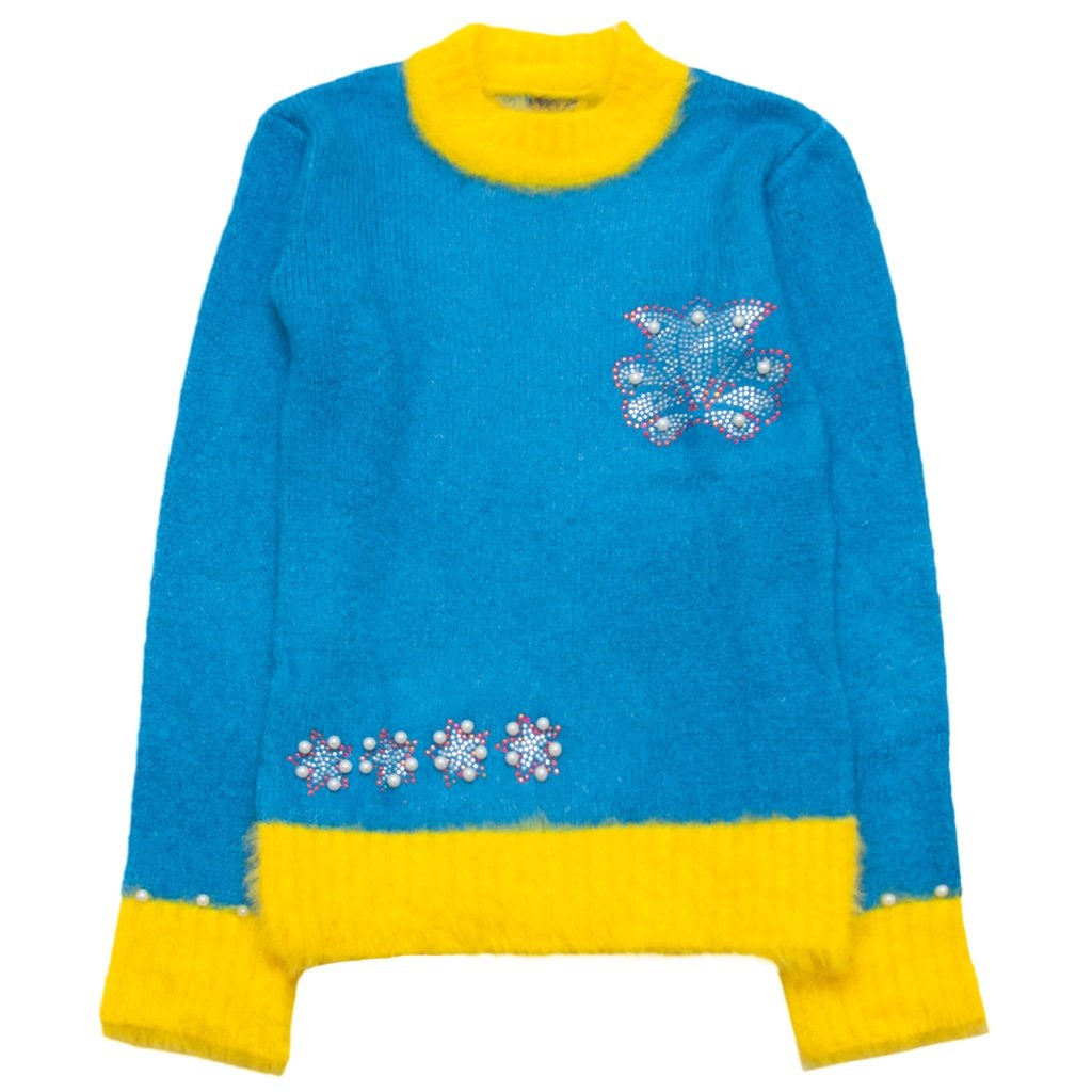 Напевно кожна матуся проходила це випробування зі своєю дитиною. З приходом холодів, потрібно одягатися тепліше. І коли светр колеться, діти категорично відмовляються одягатися. Але ми для вас приготували гарну новинку! Светр для дівчинки неймовірно м'який і теплий. Цікавий дизайн на рукавах, горловині та по низу сверта у вигляді травички - це дівчатка всі дуже люблять. Так само, по переду светра і по низу рукавів є мила прикраса з намистин і стразів. Такий виріб Вашій юній модниці точно буде по душі.