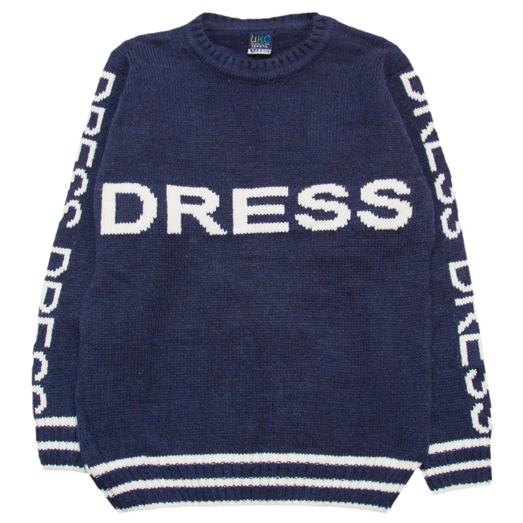 Джемпер темно-синій на хлопчика, для прохолодної погоди. Виконано з м'якої вовни, приємною до тіла дитини. По низу джемпера і низу рукавів вставлена тонка гумка, щоб ніякої протяг не зміг підібратися до тіла. Джемпер задекорований Провязать написами, які роблять його досить стильним. Підходить для будь-якого заходу, для школи, для прогулянки. Такий предмет гардероба повинен бути у кожного модного хлопчини. Добре поєднується з джинсами і класичними брюками. Ваша дитина скаже Вам спасибі за таку обновочку.