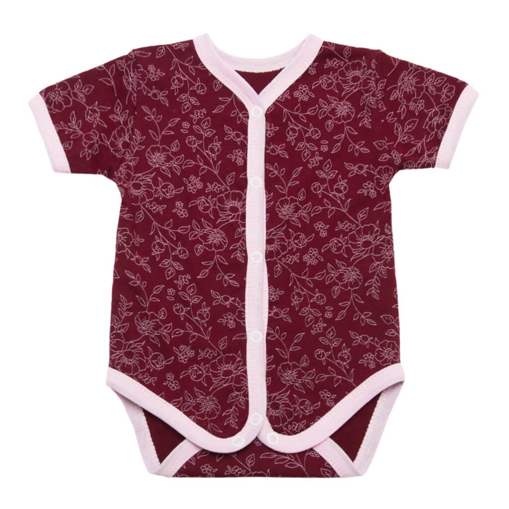 Дитячий боді з коротким рукавом бордового кольору - це ідеальний вибір для теплих днів, коли малюкові особливо важливий комфорт і свобода рухів. Пошитий з легкого і дихаючого полотна кулір, він дає змогу шкірі «дихати», запобігаючи перегріванню навіть у найспекотніші дні. Натуральний бавовняний склад робить його неймовірно м'яким, приємним на дотик і безпечним для чутливої дитячої шкіри. Завдяки зручній застібці на кнопки по всій довжині, переодягнути дитину або змінити підгузок можна всього за кілька секунд. Цей боді представлений в декількох кольорах, кожне з яких радує ніжними і стильними відтінками. Універсальний дизайн підійде як для хлопчиків, так і для дівчаток.