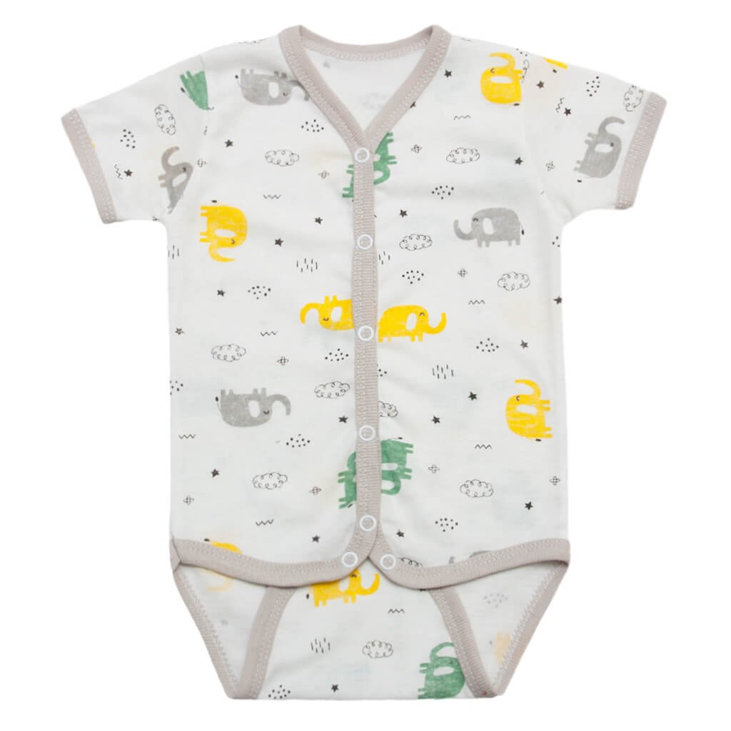 Забудьте про незручні футболки, які постійно задираються, відкриваючи спинку й пузико малюка. Ми представляємо вашій увазі дуже зручне боді в білих тонах з малюнком слоників, підійде як для хлопчика так і для дівчинки, яке стане вашим незамінним помічником у боротьбі за захист вашого малюка. Його подовжена спинка переходить в застібку, надійно кріпиться на кнопки, не даючи нижньому краю зміщуватися. Всі зовнішні зрізи боді окантовані м'яким бейковим полотном, що значно покращує їх характеристики. Бейка стабільно тримає зрізи, не даючи їм витягуватимуться, розтягнутися або деформуватися, при цьому, незаважаючи на це, дитина може вільно рухатися.