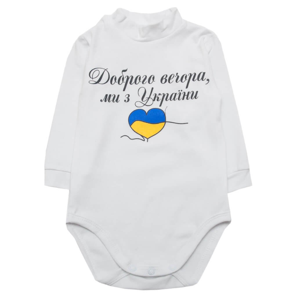 Кожна матуся знає, що в дитячому гардеробі обов'язково має бути кілька моделей боді. У такому одязі малюк почувається максимально зручно, тому що боді відмінно прилягають до тіла дитини і не доставляють дискомфорту. Представлена модель боді пошита з високоякісного полотна – стрейч-куліра. Тканина неймовірно м'яка, еластична і приємна на дотик. Краї боді оброблені бейкою, а горловина виконана невисокою стійкою. Дизайн цього боді точно сподобається багатьом батькам, на передній частині виробу присутнє дуже гарне фарбування з патріотичним написом.