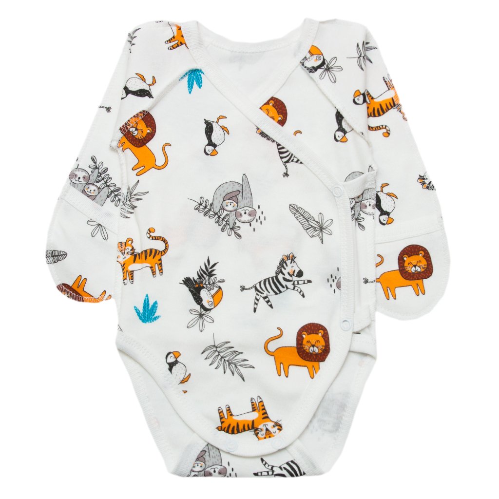 Дитячий боді з довгим рукавом із високоякісного полотна інтерлок білого кольору з малюнком тваринок сафарі - ідеальний варіант для малюка. М'який і міцний матеріал забезпечує надійне прилягання до тіла дитини. Також полотно повністю гіпоалергенне, що дуже важливо під час вибору дитячого одягу. Представлена модель виконана із закритими ручками, що вбереже дитину від переохолодження. Виріб має невеликі кнопочки з боків, а також між ніжок, що значно полегшить процес переодягання. Такі боді відмінно підходять для повсякденного використання і зручні в носінні як вдома, так і на вулиці.