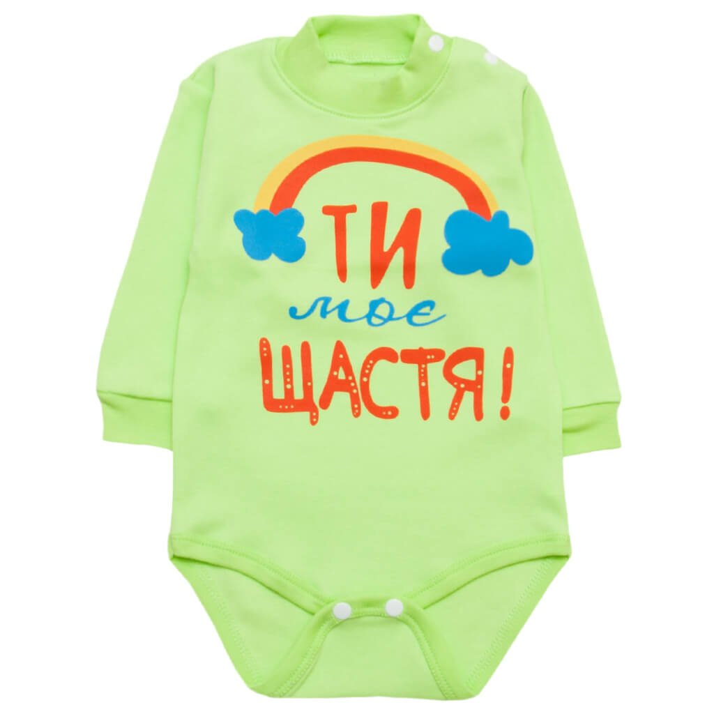 Дитячий боді з яскравим принтом пошитий із якісного бавовняного полотна - інтерлоку. М'яке та приємне на дотик полотно чудово зберігає свою відмінну якість та зовнішній вигляд після численних прань та прасуваннь. Горловина представленої моделі виконана стійкою, а на одному плічку присутні невеликі кнопочки. Також кнопки розташовані між ніжками. Довгий рукавчик оброблений широким манжетом. Цікаве фарбування з милими написами точно піднімуть Ваш настрій. Приємних покупок із нашим інтернет-магазином «Арлекин»!