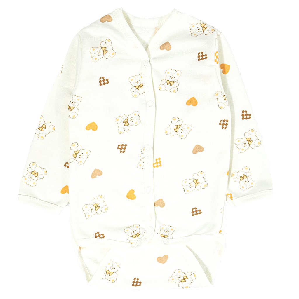 Цей боді молочного кольору з принтом сердечок відразу привертає увагу своїм ніжним дизайном і відчуттям домашнього затишку, яке він дарує з перших хвилин. Теплий, м'який і продуманий до дрібниць, він створений для того, щоб малюк відчував себе максимально комфортно в будь-який час дня. Полотно з начосом м'яко торкається шкіри дитини, забезпечуючи приємне тепло та затишок. Кнопки, розташовані по всій передній частині, дозволяють повністю розкривати боді, що робить процес переодягання неймовірно зручним і швидким. Довгі рукави захищають від прохолоди, не обмежуючи активних рухів малюка.