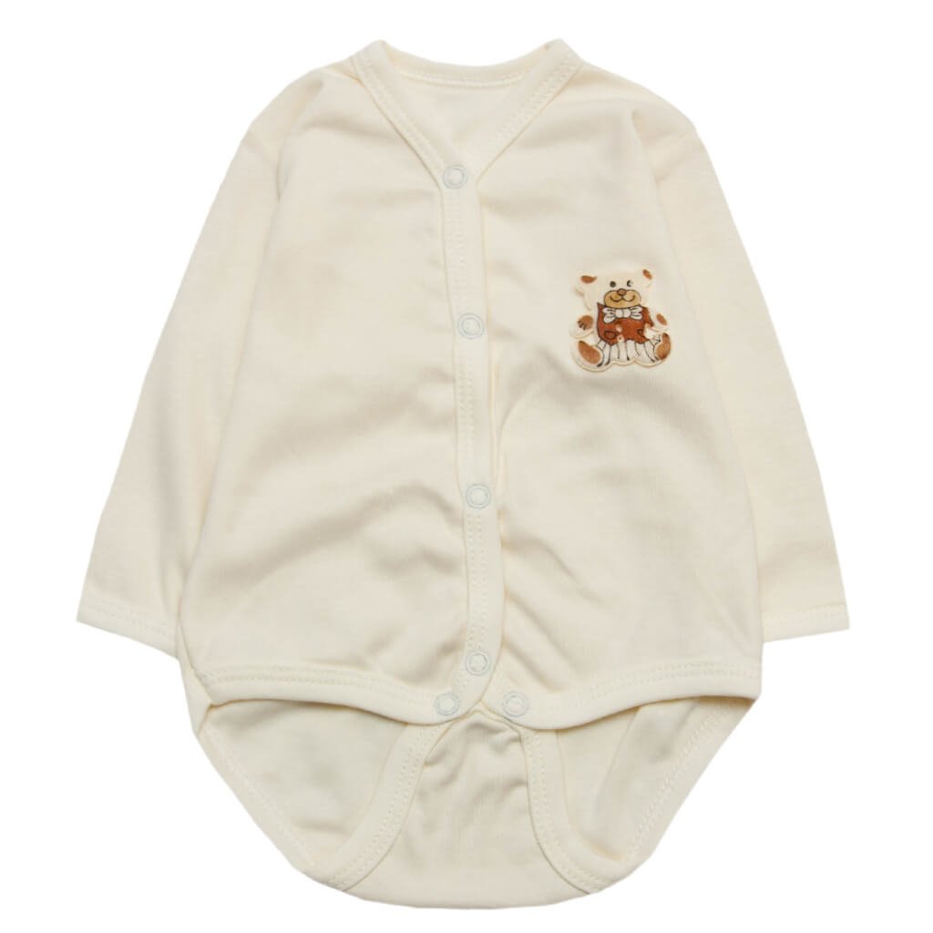 Наш інтернет-магазин "Арлекин" може похвалитися своїм великим асортиментом дитячого ясельного одягу. У цьому розділі Ви знайдете абсолютно різноманітні модельки дитячих бодіків і чоловічків. Представлена модель дитячого боді пошита з натурального трикотажного матеріалу - інтерлоку. Багато батьків знають, що саме це полотно ідеально підходить для виготовлення дитячого одягу. Боді виконаний з довгим рукавом і застібається на кнопочки, які розташовані на передній частині. Прикрашений бодік невеликою нашивкою, яка також розташована спереду.
