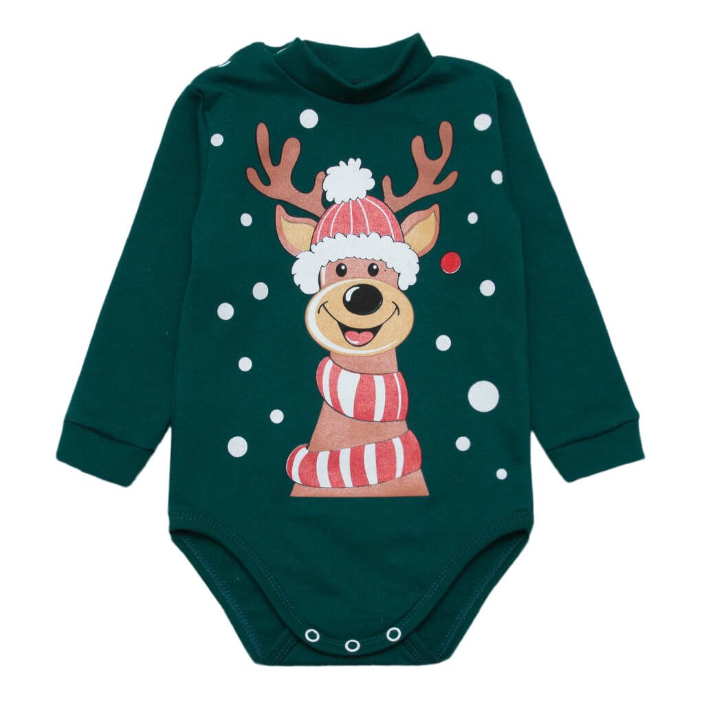 Боді-гольф це ідеальний варіант одягу на холодну пору року. Так шия щільно закривається стійкою бодіка, і малюкові не страшні протяги. Дана модель, зеленого кольору, з принтом оленя, пошита з начісного полотна, яке складається повністю з бавовни. Внизу боді є кнопки, що полегшує перевдягання дитини. Також на плечі є кнопки. Окрасою цього боді є красивий малюнок мультфільму по переду виробу. Також у нашому інтернет-магазині ви можете придбати й інші вироби для малюка, такі як чоловічки, штанці і так далі.