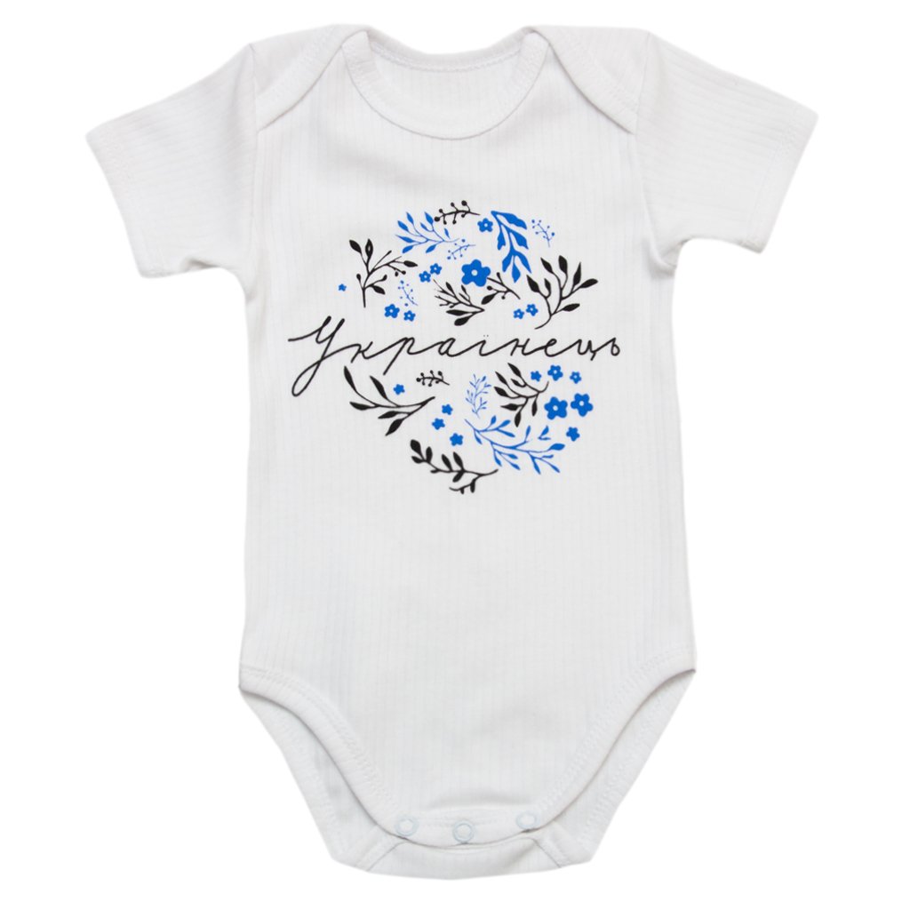 Дитячий боді - це практичний і зручний комбінезон для малюків, виготовлений з високоякісного трикотажного матеріалу під назвою інтерлок рапорт - білого кольору. Інтерлок рапорт - це вид бавовняної тканини, який забезпечує м'якість, еластичність і міцність виробу. Горловина боді виконана у вигляді човника, а застібається виріб на кнопочки між ніжок. На передній стороні виробу присутній патріотичний напис - Українець, з різними візерунками, які точно сподобаються Вашому малюку. Даний боді зберігає свою форму та якість навіть після багаторазового прання.