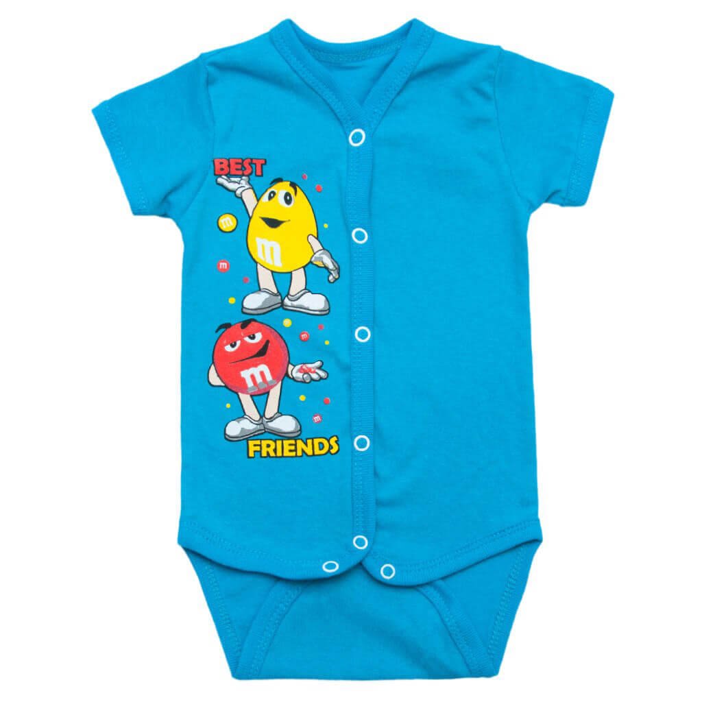 Ця літня модель боді для хлопчика - легкий, дихаючий, зручний і гарний виріб - ось, що треба Вам та Вашому малюку. Боді на кнопочках, тому Ваш малюк почуватиме себе зручно й комфортно. Ніжки і ручки натирати не буде, адже краї оброблені бейкою. Спереду красиве й миле зображення, яке не залишить без уваги жодного малюка. Наш торгова марка піклується про якість своєї продукції, щоб Ваше дитинча себе почувало в ній комфортно. Порадуйте себе і малюка обновочками! Боди бірюзового кольору з покраскою "M&M's".